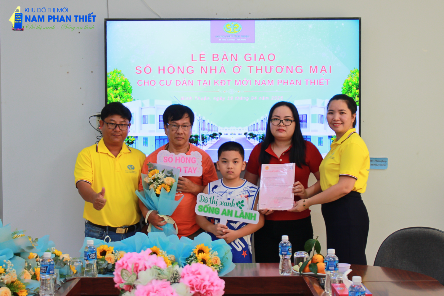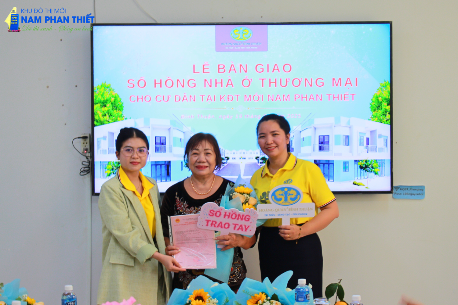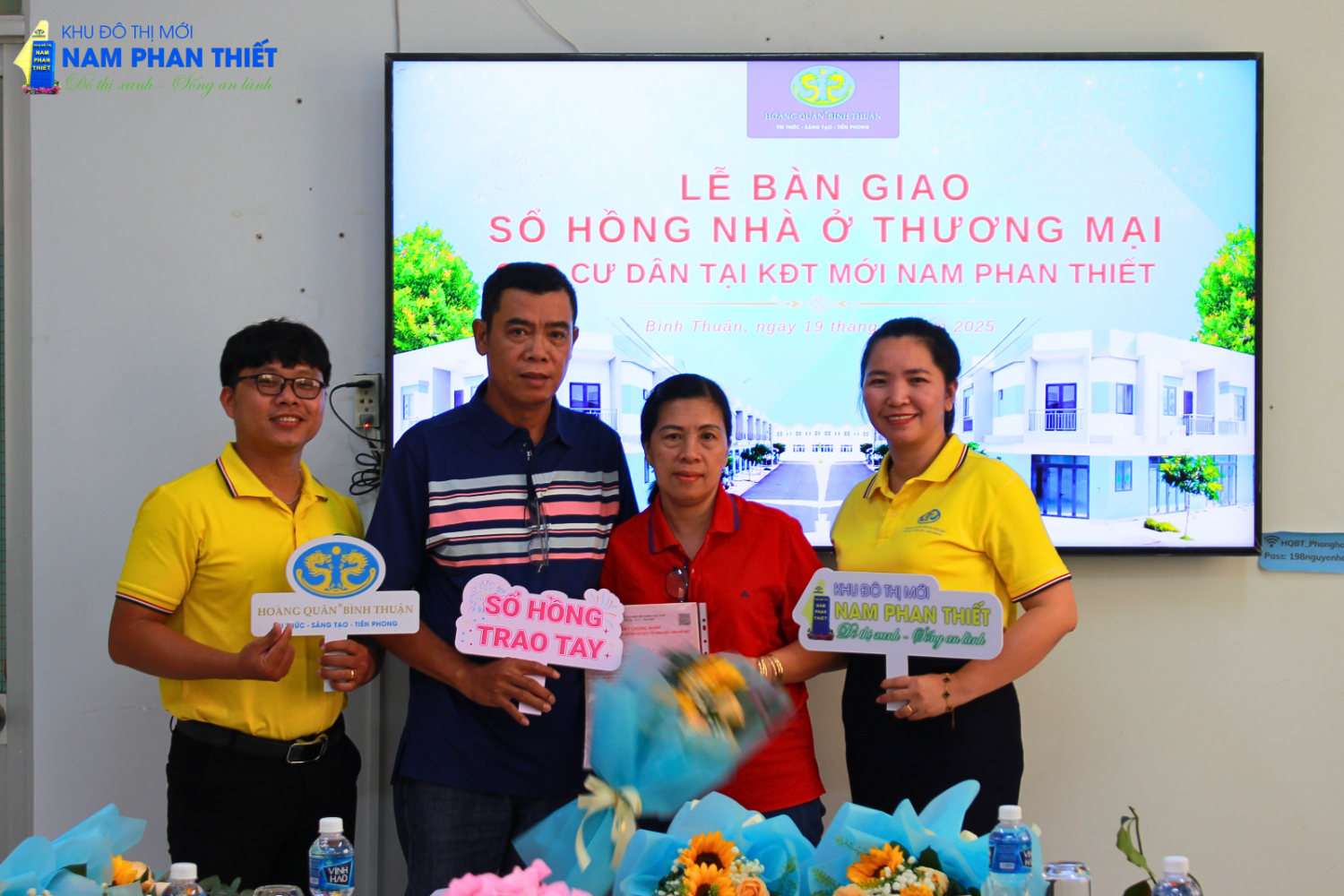 Sáng 19/4/2025, tại Công ty Cổ Phần TV – TM – DV Địa Ốc Hoàng Quân Bình Thuận đã diễn ra buổi lễ trao sổ hồng nhà ở thương mại đợt 2 cho cư dân tại dự án Nhà ở xã hội KCN Hàm Kiệm 1. Đây là một dấu mốc quan trọng, khẳng định cam kết của Hoàng Quân Bình Thuận trong việc mang đến những sản phẩm nhà ở chất lượng, đảm bảo pháp lý cho khách hàng.
